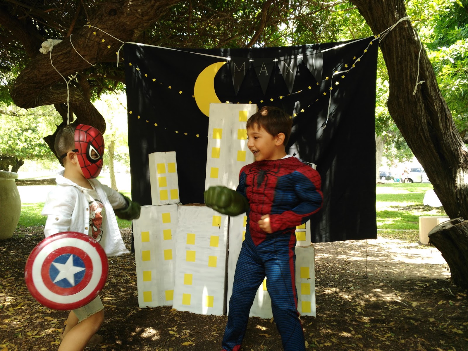 Everyone had a blast and kept on commenting on what a great party it was so I was definitely one proud mommy. It was worth all the late nights (thank you Starbucks double shot) and hard work and I would do it all over in a heart beat! My boy kept on commenting on what an awesome party it was and that just made me the happiest. The photo backdrop was a success, I took all of Maxi's costumes and super hero props so everyone could use. And honestly lots of the decor is now hanging on his little side of our shared room, the garland, the chalkboard banner with his name, the iron man frame and I've been meaning to put up his little garland of spider man pictures. I will post pictures when our room is done.